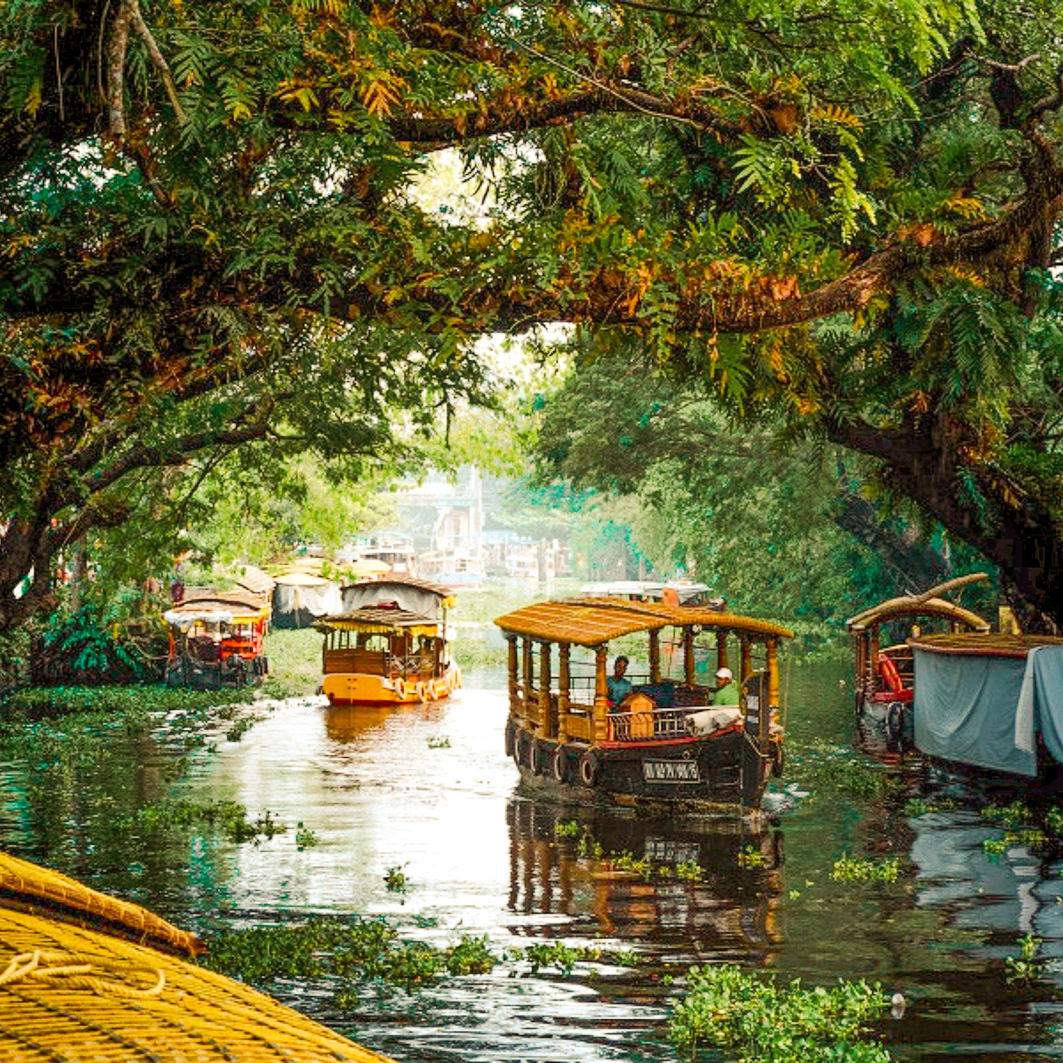 - Backwaters di Alleppey: Con oltre 900 km di canali navigabili, Kerala è anche soprannominata “la venezia d’Oriente”. Un giro in houseboat nei canali lussureggianti è un’esperienza unica. Vi regalerà scorci spettacolari sulle risaie e potrete osservare la vita di pescatori e contadini.